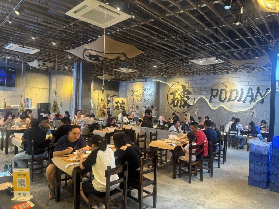 除了粥品,還有這些硬菜適合球迷聚餐小酌。唐記炒雞(沙朗店)的清遠走地雞采用秘制醬料,猛火爆炒后皮香肉滑、香味四溢。還有鮑魚燜雞、水魚雞等硬菜,適合球迷聚餐小酌。破店東北燒烤的店鋪內廢墟工業風氛圍感拉滿,燒烤都是現串現烤,炭火氣十足。