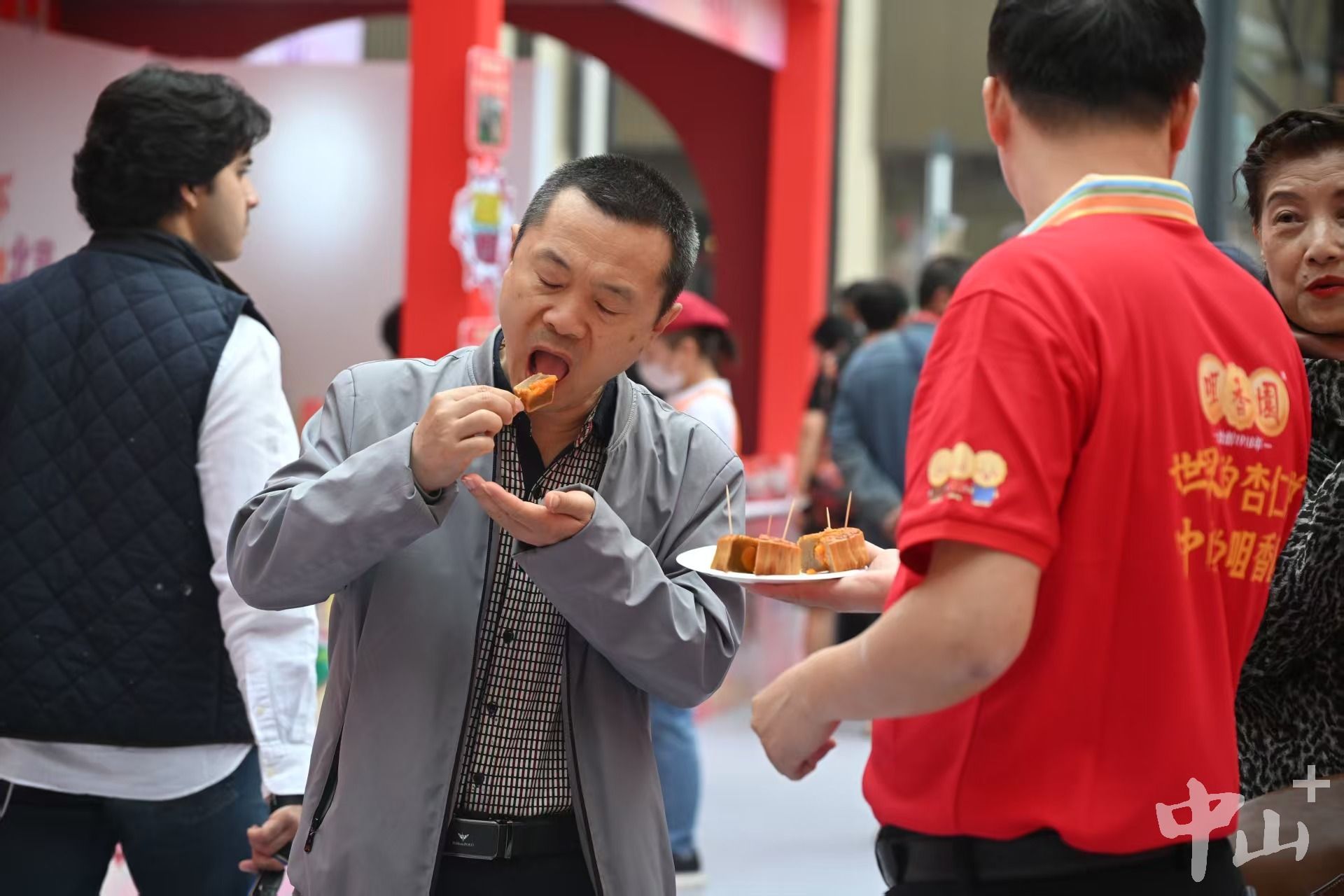 在“廣貨大集”逛了一圈后,北京市民李志廷又折返回鵬興蛋制品的展銷位前,購買了兩盒咸鴨蛋,“平時家里人就愛吃這個,中山這款看著就特別有食欲。”他笑著透露,一家人曾去廣東旅游過,當地美食給他們留下了深刻印象,回來后一直念念不忘。“以前只知道中山是偉人故里,今天才了解到,原來中山還是全國首個‘中國粵菜名城’,以后有機會,一定要去中山打卡美食。”對于這樣的活動方式,他也連連點贊,“以前都是我們跑出去旅游帶特產回來,沒想到現在‘家門口’就能買到地道的城市特產。”