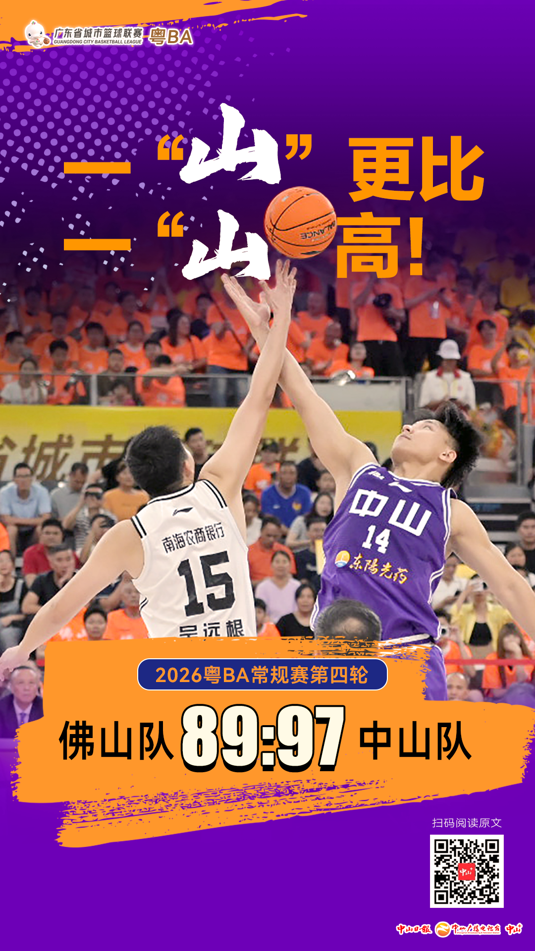 4月18日晚,“粵BA”常規賽第四輪比賽焦點戰在佛山南海體育中心體育館打響,中山隊繼與廣州隊比賽后,再次上演大逆轉,以97:89的比分戰勝佛山隊,繼續領跑西區榜首。
