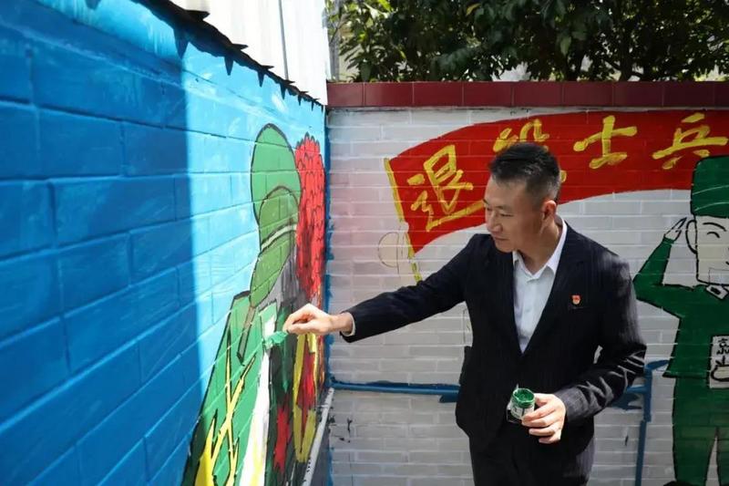 近日,中山市三角鎮黨委書記李宗,黨委副書記、鎮長李凱航到該鎮退役軍人服務中心調研,與退役軍人座談交流,并共同在創意文化墻上繪圖。在鎮領導、退役軍人和師生志愿者的描繪下,一幅幅軍味十足的卡通形象、三牛精神等壁畫,惟妙惟肖地繪制在文化墻上,仿佛在訴說著一個個崢嶸歲月的故事。李宗表示,參戰功臣為國浴血奮戰,鎮退役軍人服務中心要認真落實好“八個一”工作法,給予他們特別的關愛。