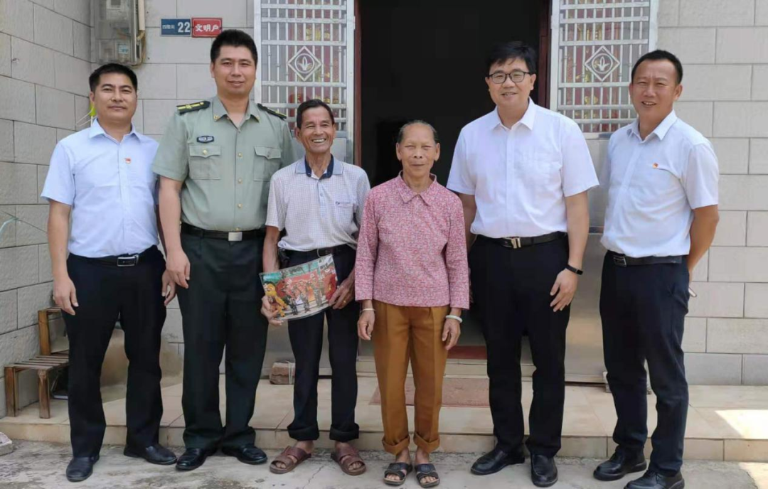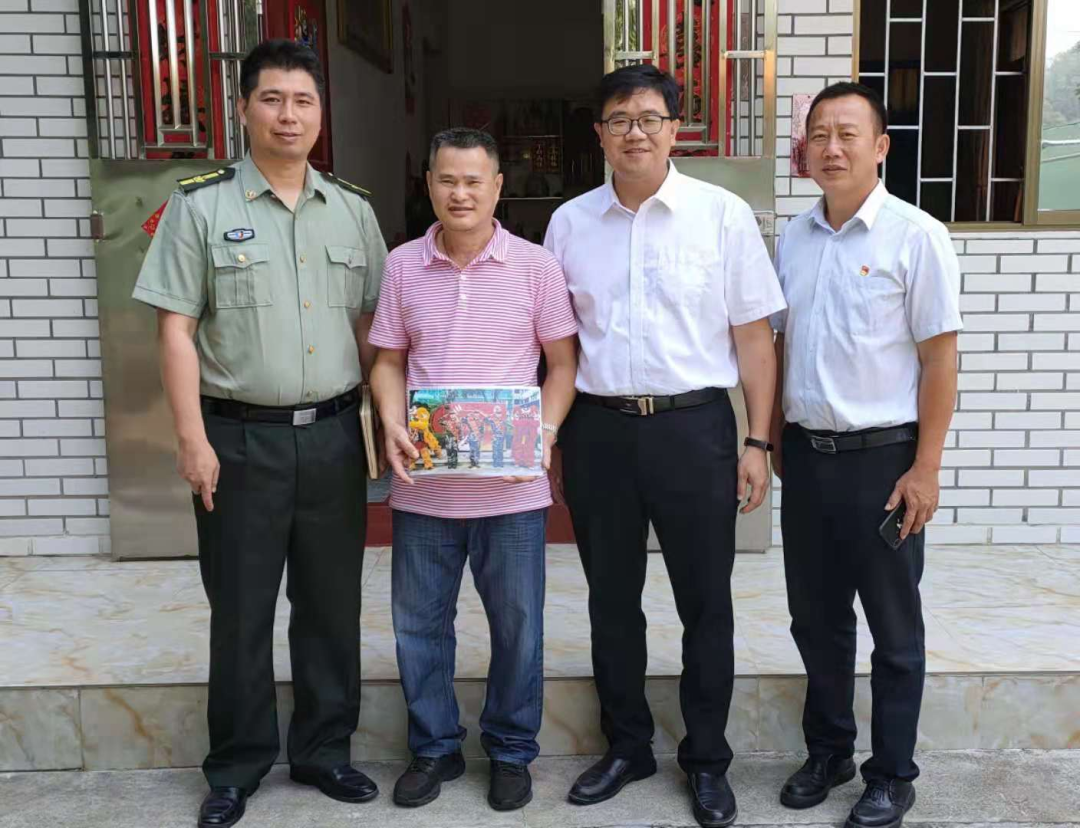 與黃曉聰親屬親切交談,介紹了黃曉聰在軍營的訓練和生活情況 為了讓軍人放心,軍屬安心! 4月30日上午,神灣鎮黨委委員張寧溥會同鎮公共服務辦、武裝部、退役軍人服務中心、村社區等干部一行,先后前往現役軍人陳嘉豪、黃曉聰、曾嘉鴻家中,分別與他們的親屬親切交談,感謝其父母為部隊培養了一個優秀的戰士,為神灣鎮人民爭光,期間,張寧溥親切問候軍屬的生活、工作和家庭等情況,想方設法解除軍人的后顧之憂,讓新兵們安心服役。