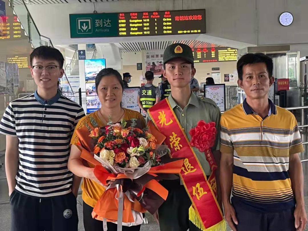 “去時鑼鼓喧天,歸來夾道歡迎。” 九月,正是退役軍人 從祖國各座軍營 返回家鄉的退役季 為營造“一次參軍、一生光榮”的濃厚氛圍 讓退役軍人感受到家鄉人民的熱情和關懷 激發老兵退伍不褪色 返鄉建新功的壯志熱情 9月13日下午,五桂山街道2021年首位退役軍人曾世紀光榮退役返鄉。街道退役軍人服務中心負責人、社區“兩委”干部、工作人員以及曾世紀的父母早早手持鮮花,在城軌南朗站等候迎接世紀回家。 回想2019入伍歡送大會時曾世紀代表五桂山即將入伍的新兵作表態發言,那年,他主動請纓,到艱苦邊遠地區服役。“參軍不僅是個人的榮耀,也是家人的榮耀,更是鄉親們的榮耀。到了部隊后我會堅決服從命令,聽從指揮,刻苦訓練,勤學本領,絕不辜負家鄉人民的期望!”