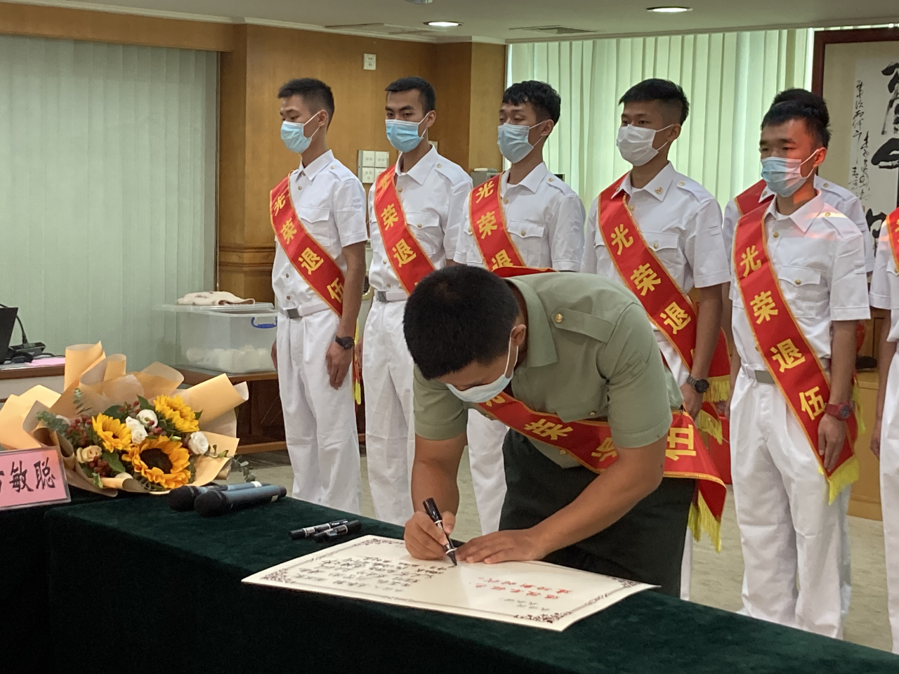 歡迎儀式上, 黨委副書記、鎮(zhèn)長黃景輝,黨委委員李海龍、副鎮(zhèn)長候選人余添宏,對此次返鄉(xiāng)的21名退役軍人表示熱烈的歡迎和親切的問候,并表示,退役士兵是家鄉(xiāng)人民的驕傲,是祖國和平安定的功臣和棟梁,是能力過硬的高素質(zhì)復(fù)合型人才,經(jīng)過軍旅生活的磨礪,身體變得強健、意志變得堅強、思想變得成熟、行為變得理智,相信會在人生的不同階段、不同崗位上繼續(xù)出色工作、活出精彩人生!