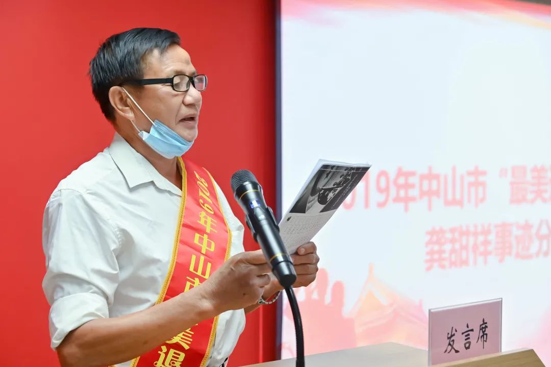 座談會伊始,全體人員共同觀看學習了全國英雄人物視頻,開展了優撫政策講解和宣傳。 優撫政策宣傳 隨后,戰時二等功臣蔣添祥、2019年中山市“最美退役軍人”龔甜祥分別進行先進事跡分享。 蔣添祥是東鳳鎮和泰村中共黨員,1976年12月入伍。1979年2月跟隨部隊參加對越自衛還擊戰,榮獲二等功。 龔甜祥是東鳳鎮東罟步村中共黨員,1970年12月入伍,1975年12月返鄉后積極投入社會工作,并先后勇救多名落水者,獲評2019年中山市“最美退役軍人”。