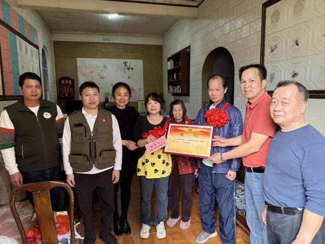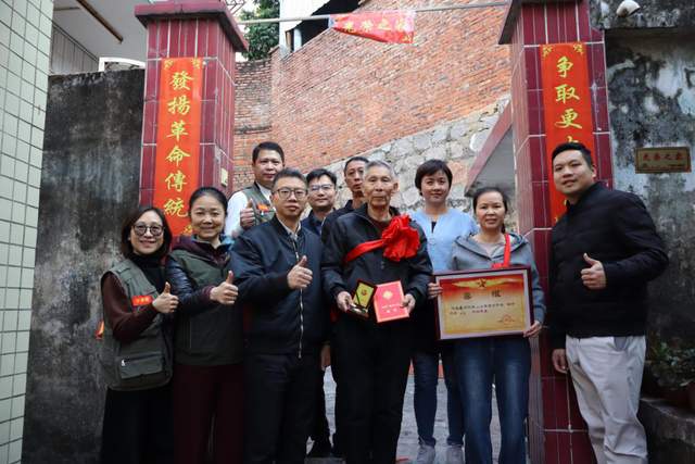 ▲慰問組為濠涌村方漢明家屬送上“四有”優秀士兵喜報