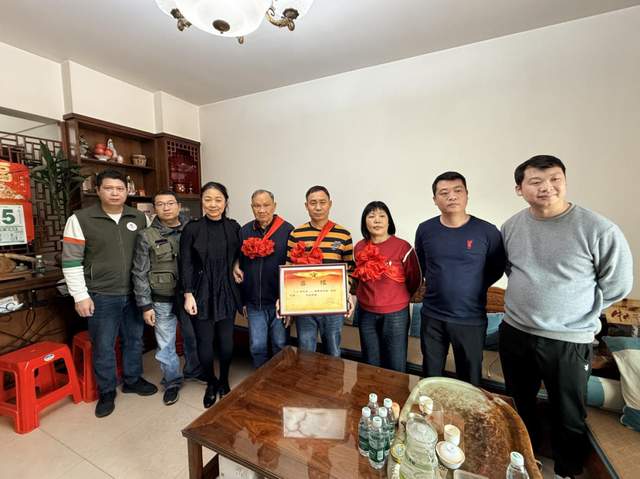 新年伊始,喜報頻傳。近日,沙溪鎮陸續收到多份立功受獎喜報,目前已收悉10位現役軍人榮獲2025年度“四有”優秀士兵(軍官)。為弘揚擁軍優屬光榮傳統,營造“一人參軍、全家光榮”的濃厚氛圍,自1月6日起,沙溪鎮黨委、鎮政府領導率領退役軍人服務中心、武裝部及各村(社區)負責人組成慰問組,分批登門為優秀士兵家屬送上滿載榮譽的喜報和新春祝福。 慰問現場,慰問組為軍屬佩戴光榮紅花,宣讀喜報,詳細介紹士兵在部隊的優異表現,對軍屬們默默支持國防事業、鼓勵親人建功軍營表示衷心感謝。接過喜報的家屬們臉上洋溢著自豪與喜悅,表示將繼續做好堅強后盾,叮囑孩子在部隊安心服役、再立新功。
