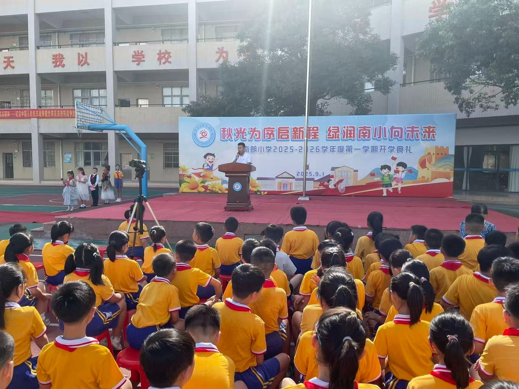 9月1日,中山南朗街道南朗小學舉行秋季學期開學典禮。開學典禮以紀念中國人民抗日戰爭暨世界反法西斯戰爭勝利80周年為主題,把愛國主義教育作為新學期的“開學第一課”,帶領同學們回望烽火歲月,弘揚偉大抗戰精神。 南朗街道南朗小學黨支部書記、校長杜少君為同學們講述了可歌可泣的抗戰故事。簡文祥 攝開學典禮上,南朗街道南朗小學黨支部書記、校長杜少君以《銘記偉大勝利,傳承抗戰精神——紀念中國人民抗日戰爭暨世界反法西斯戰爭勝利80周年》為題,講述了可歌可泣的抗戰故事,為全體師生上了一堂生動的思政第一課。 92歲的老校長程民興受邀來到學校,他以親歷者的身份為同學們講述校園經歷的抗戰故事。簡文祥 攝南朗小學的前身是安定學校,也是1943年南朗安定戰斗的核心遺址。活動當日,92歲的老校長程民興受邀來到學校,他以親歷者的身份為同學們講述校園經歷的抗戰故事,讓過去的歷史多了份可觸的溫度。“日本飛機轟炸安定學校時,瓦片碎裂的聲響至今仍在耳畔回響,那次轟炸,我險些沒能活下來。”他告訴同學們,日寇占據安定學校后,把兩層教學樓改造成堡壘,墻外布滿帶刺的鐵絲網,槍口日夜對著村口;那時他就躲在閣樓里,親眼看見二樓窗口常年架著機槍,夜里探照燈掃過田野時,全村人都屏息凝神,不敢發出半點聲響。 如今,程民興的兒女們在國外生活,孩子們想要接他出國,但他卻執意留在國內。他告訴同學們:“你們看,咱們現在的日子多好啊——吃的、用的樣樣齊全,出門不管是坐車還是騎車,去哪兒都特別方便;再瞧瞧你們的校園,環境優美,設備先進。同學們一定要珍惜這么好的學習環境,認真讀書,增長本領,祖國的建設以后就要靠你們了。” 杜少君帶領孩子們到南朗小學操場保留的帶彈孔的殘墻,講述抗戰往事。簡文祥 攝活動最后,杜少君特意帶領孩子們到南朗小學操場保留的帶彈孔的殘墻,觸摸那些深淺不一的彈痕。他指向殘墻旁生長的綠植說道:“這片曾被戰火灼燒的土地,如今已長出繁榮的新綠。烈士們用生命守護的家園,正在一代代人的手中變得更好。”觸摸彈痕的那一刻,同學們仿佛在與歷史對話:傳承偉大抗戰精神,不是一句口號,而是要接過前輩的接力棒,在新時代為家鄉、為祖國奮斗。 校園操場、紅色地標、親歷者、戰斗遺址串聯起一堂行走的思政課。杜少君說:“讓孩子們在歷史現場觸摸過去,才能真正理解‘銘記’的意義。偉大抗戰精神的傳承,就藏在每一次駐足、每一次傾聽、每一次思考里。” 通訊員:于銳 簡文祥 ◆編輯:吳玉珍◆二審:鄭沛鋒◆三審:周亞平 文盾校對——用科技,守文字 |