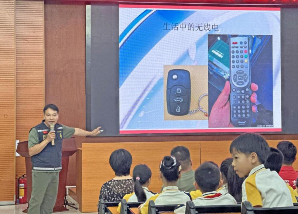 西區中心小學內,省、市最美退役軍人結合自身經歷,講述軍人忠誠擔當與“海空衛士”王偉等英雄故事。隨后,無線電運動協會帶來一堂科普課,學生們嘗試摩斯密碼收發操作,在“滴答”聲中感受科技安全的重要性。
