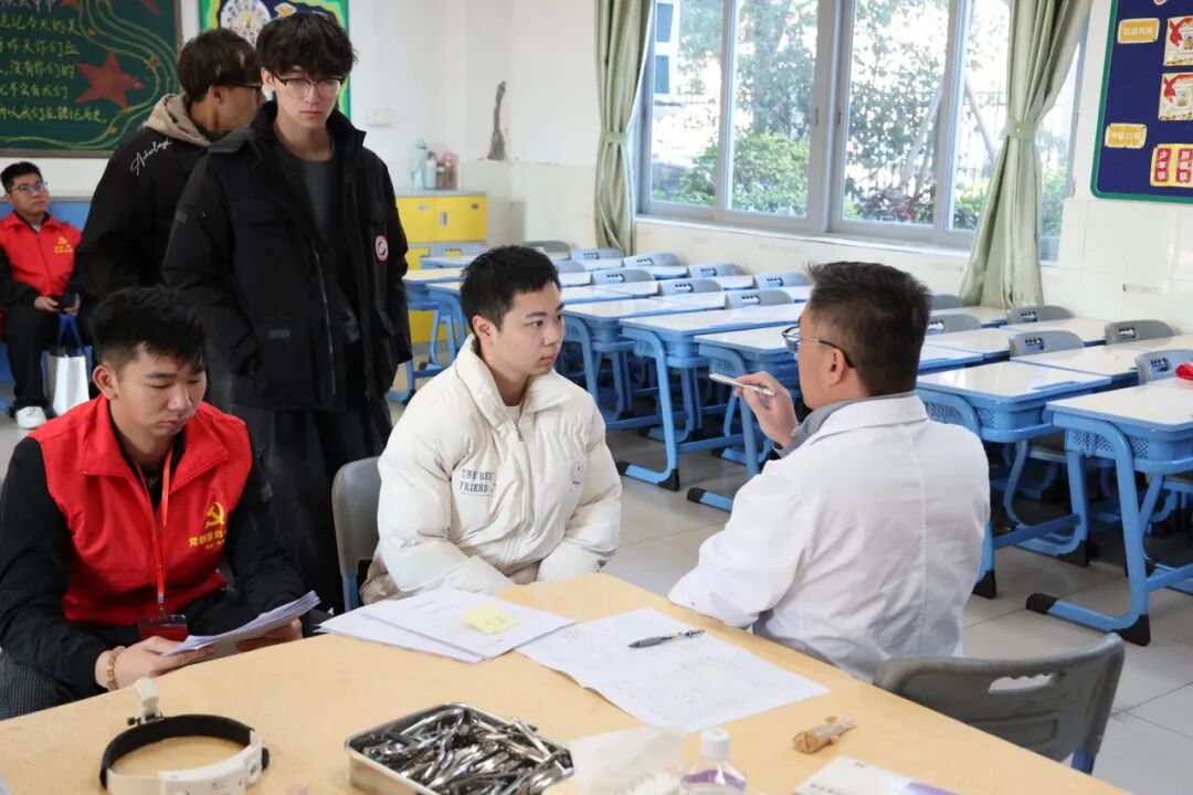 體檢現場,應征青年在街道體檢保障人員的引導下,依次排隊進入內科、外科、五官科、眼科、口腔科等檢查區域,秩序井然。南朗醫院醫務人員嚴格按照《應征公民體格檢查標準》(2022年版)和體檢流程,認真核對身份信息,逐項檢查身高、體重、血壓、視力、聽力等項目,確保不漏檢、不誤檢,嚴把兵員質量第一關。