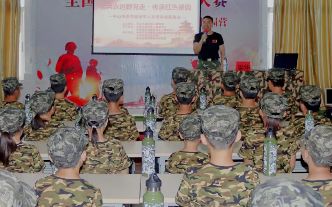 老兵鄭容添表示,老兵宣講團是一個學習的平臺,加入宣講團對個人來說是一種義務與責任,成員們將不忘初心,牢記使命,為坦洲的國防和青少年成長教育盡一點微薄之力,為坦洲和美發展講好優良傳統和革命故事,激勵青少年健康成長。 “老兵宣講團”各成員在現場分享退役后工作和創業經歷,介紹了開展各類志愿活動的故事。老兵們的好經驗、好做法讓大家很受啟發。 坦洲鎮公共服務辦公室負責人表示,退役軍人為國防和軍隊建設作出了重要貢獻,是社會主義現代化建設的重要力量,是黨和國家的寶貴財富。組建“老兵宣講團”開展紅色宣講活動意義重大,要結合在“八一”“國慶”“黨的二十大”等重要時間節點,有計劃地開展“老兵宣講團”進學校、進社區、進農村、進機關、進企業等宣講活動,大力弘揚優秀退役軍人的先進事例,營造崇軍優屬的良好社會氛圍,為全鎮經濟社會發展凝聚強大力量。 當天下午,“老兵宣講團”成員梁華來到坦洲鎮雛鷹國防教育研學基地,為開展夏令營軍訓的60余名學生上了一堂生動的愛國主義教育課。梁華結合自身16年的軍旅生涯向學生們普及國防教育知識,講述強軍興軍歷史及中國軍人的職責和使命,讓孩子們近距離感受軍人氣質和榮耀,增強他們強國強軍、保家衛國的責任感和使命感。  ▲“老兵宣講團”成員梁華給學生上國防教育課。