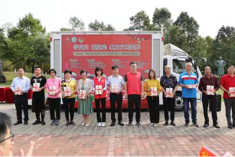 活動(dòng)現(xiàn)場(chǎng),主辦方向橋崗社區(qū)各居民區(qū)黨支部代表贈(zèng)送黨史學(xué)習(xí)書(shū)籍 ,并正式啟動(dòng)“學(xué)黨史直通車”活動(dòng)。