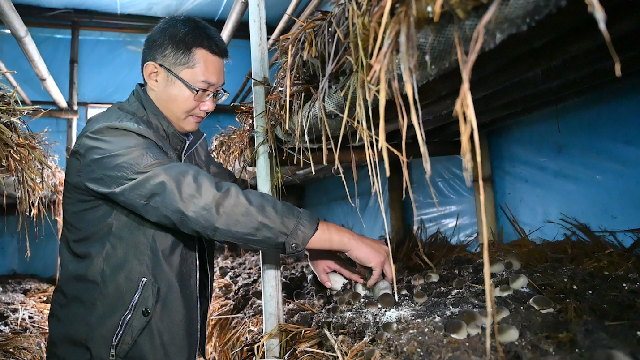 選中木架上一個飽滿的民眾草菇,孫林輝小心翼翼地將它扭下來,“草菇的菌絲在稻草中錯綜復雜,如果采摘時不小心傷害到菌絲,就會影響總體的產量。”孫林輝介紹。