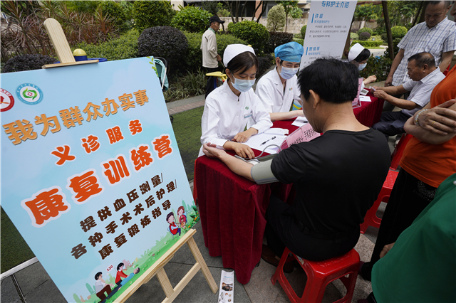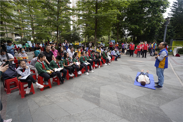 活動現場,“我為群眾辦實事”實踐活動熱火朝天。中山市博愛醫院醫務志愿者服務總隊帶來12個現場義診攤位,為居民們提供常見疾病咨詢和初步篩查診斷服務、??谱o理服務、測量血壓血糖以及藥師咨詢服務,普及疾病防治知識。東區醫療輔助志愿服務隊專業講師通過“情景+體驗”的教學形式,寓教于樂,讓居民群眾在身臨其境中學習急救和避險知識,以提高大家處理突發事件的能力,培養自救互救的意識和技能。