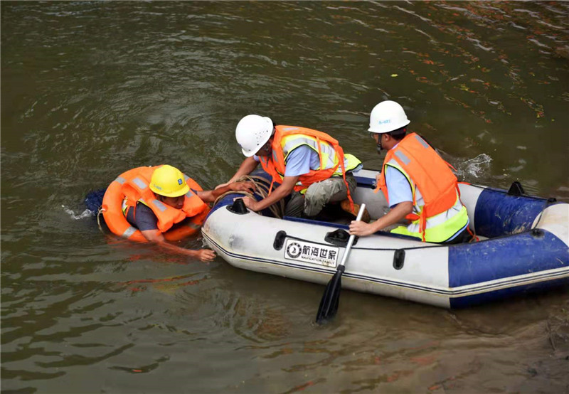 此次演練主要以“十號涌清淤施工圍堰局部被水沖垮,有工人被困水中,情況危急”為背景,演練內(nèi)容包括被困人員搶救、施工現(xiàn)場搶險兩部分。演練期間,所有人員服從指揮、聽從調(diào)度、各司其職、行動有序、反應迅速、處置有效,出色完成了演練任務。