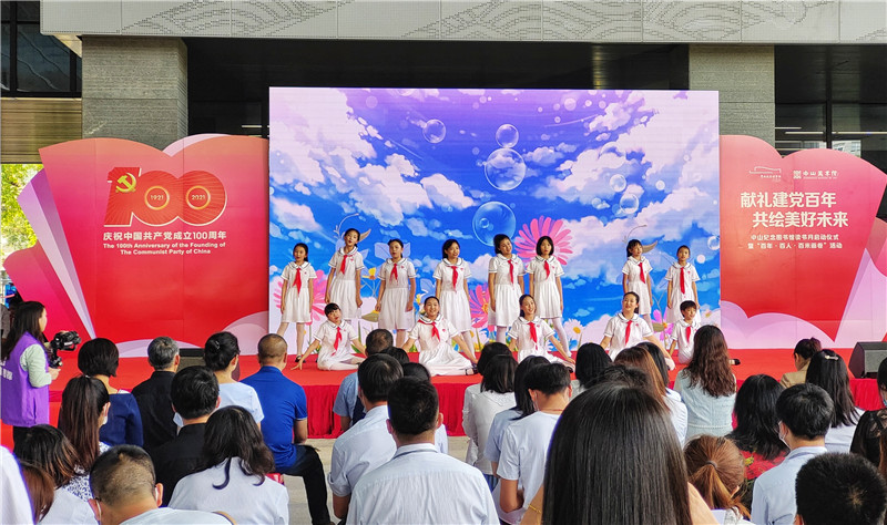 4月23日是第26個世界讀書日。當日,中山紀念圖書館聯合中山市美術館舉辦了“獻禮建黨百年 共繪美好未來”——中山紀念圖書館讀書月啟動儀式暨“百年·百人·百米畫卷”活動。中山市石岐中心小學、中山市東區松苑中學、中山市東區柏苑中心小學、中山市東區朗晴小學、中山市東區竹苑小學、中山市博愛小學等六所學校的一百名學生,以“國富民強”“愛我中華”“童心向黨”“幸福生活”“美麗家鄉”“少年筑夢”為主題,通過繪畫的形式,謳歌中國共產黨,反映時代精神,傳承中華優秀文化。