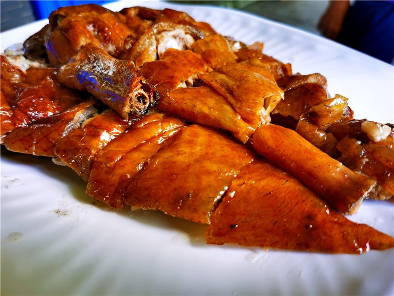 臨近中午,讀者團來到三角花果山莊,果木荔枝柴燒鵝、特色烤羊排、柚子皮炒飯讓讀者們贊不絕口。