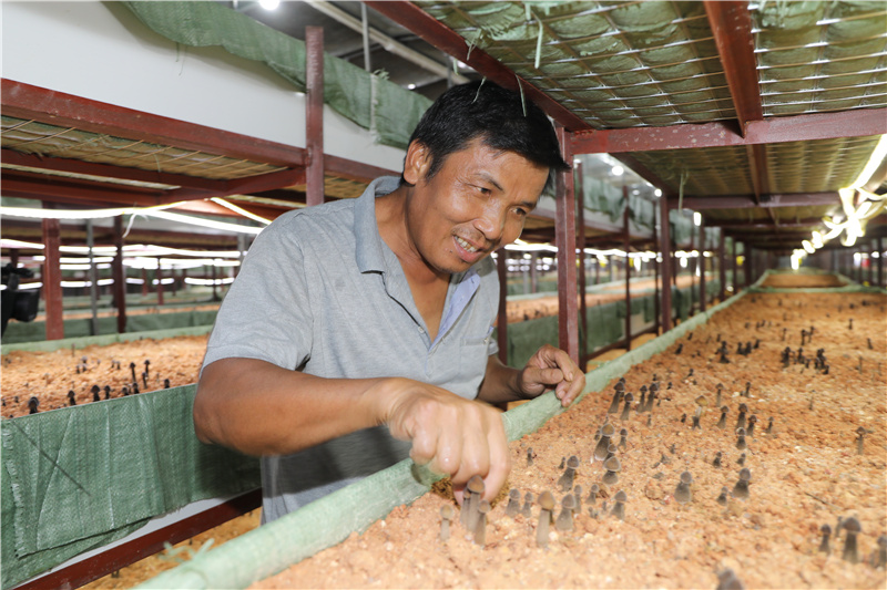 5月14日下午,德慶縣河村,蘑菇大棚里,涼氣習人。40多歲的脫貧戶趙季南將一朵朵比拇指大的黑皮雞樅菌,從層架上拔起來。“剛收完一批,市場上能賣到20多元一斤。”