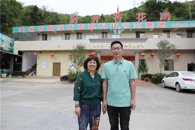 ▲封開縣廣遠家禽育種有限公司的老板陳燕英和丈夫鄧遠新,基地除了育雛,還開辦了加工廠和專門品嘗杏花雞的餐廳。