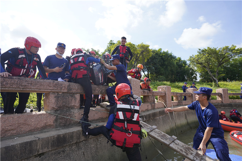 揭牌儀式結束后,水域救援實戰演練正式開始。“動力艇翻舟自救準備,嗶……”隨著一聲哨聲,翻舟、掉水、接繩、爬舟、拉繩……水域救援專業隊隊員一系列動作熟悉連貫、配合默契,迅速收回漿板、拉起落水隊友,演練過程銜接緊湊、有條不紊。