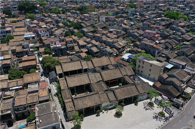 漫步于安堂,處處散發著明清嶺南古建筑文化的余韻。村中古建筑連片而建,現存上千座,多為灰磚木結構,雕工精細,從上空俯瞰古建筑群,鱗次櫛比、古樸別致,仿若一幅渾然天成的寫意畫。