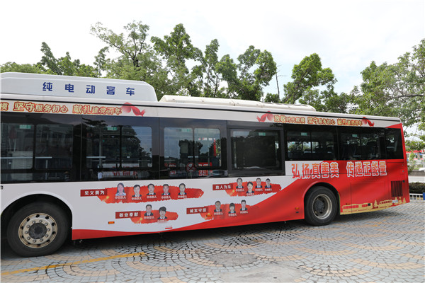 6月25日上午,由中山市精神文明建設委員會辦公室指導,中山市總工會、中山市公交集團聯合主辦的“致敬時代楷模 堅守服務初心 獻禮建黨百年”主題公共汽車啟航儀式在中山城南汽車客運站舉行。“勞模服務號”“工匠服務號”“好人服務號”3個單元的5輛主題公共汽車首度亮相并正式投入使用,將成為市民了解模范故事、感受榜樣力量的流動課堂。