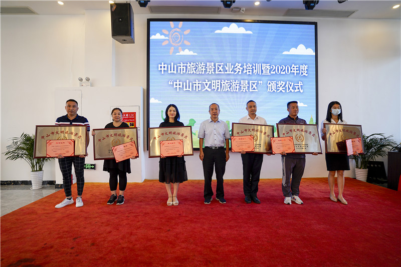 據悉,這是中山市首次評選市級文明旅游景區,23家旅游景區獲表彰,包括:孫中山故里旅游區管理中心、伊泰蓮娜DIY地帶、參宮野山參文化博物館、泉林歡樂世界、華藝廣場、星光聯盟、大信·新都匯古鎮店、廣駿生態園、古鎮燈文化博物館、天倫游樂投資有限公司、創益文化園、中山市祥農洲農業高新科技園、帆鯊海洋文化館、偉豐生態農業公園、中山詹園、咀香園、廚邦醬油文化博覽館、中國紅木文化博覽城、紫馬嶺動物園、悅來親子王國、小欖菊城酒廠有限公司、迪茵湖休閑生態樂園有限公司、大尖山露營公園。