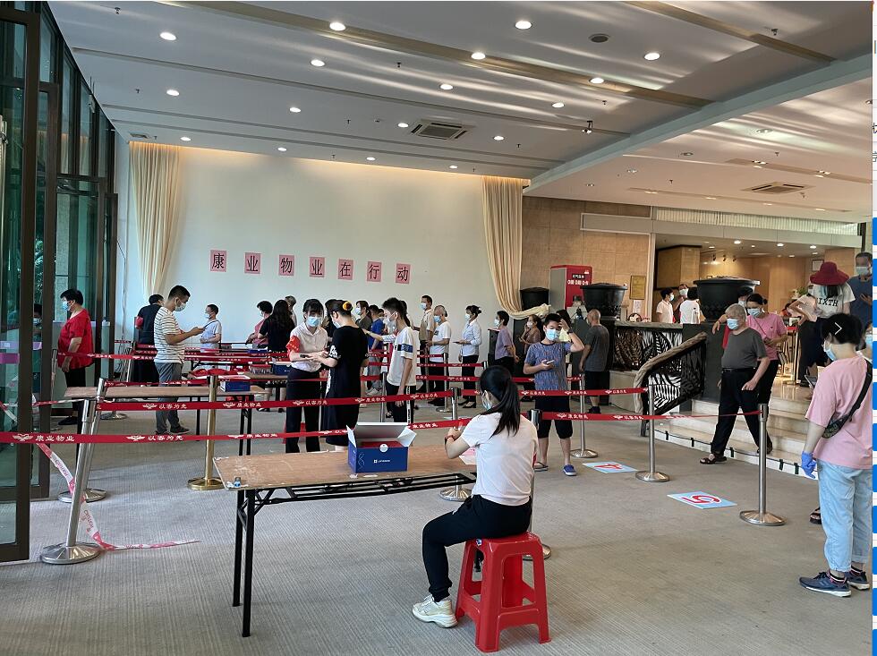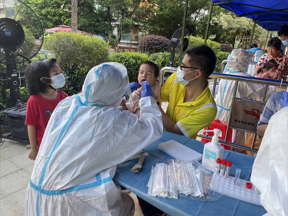 “醫(yī)務(wù)人員在高溫天氣穿著防護服為業(yè)主采樣,辛苦了!”在采集出口,小區(qū)業(yè)主王先生為醫(yī)護人員點贊。他告訴記者,昨晚11點多回到小區(qū)看到會所的燈還亮著,物業(yè)工作人員和志愿者都還在布置場地,非常不容易。