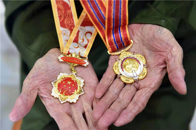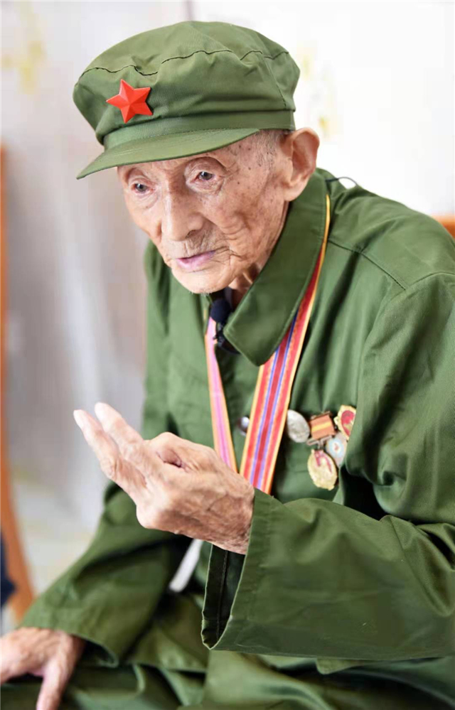 跟隨家人來到中山市大涌鎮已二十多年的嚴廷安,出生于安徽。1948年,22歲的他加入解放軍38軍,隨后開始了戎馬半生的征戰。他曾參加過遼沈戰役、平津戰役、渡江戰役、抗美援朝戰爭,前半生從槍林彈雨中走來,胸前眾多的戰爭紀念章就是這位老兵最高的榮譽。他參加的最后一場戰爭是抗美援朝戰爭。在朝鮮打了三年仗,又留下協助建設朝鮮兩年,五年后他才回國。而他所在的警衛加強排80多人,僅9人回來,他說:“從沒想過,還能活著回來。”