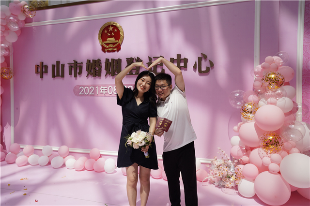 “服務(wù)很周到,儀式感很足。”黃昭慈和邱雨虹夫妻二人都是退役軍人。男方畢業(yè)于軍工院校,女方是中國人民解放軍海軍某部隊的退役軍人,還是中山市的征兵宣傳形象大使。女方父親邱先生現(xiàn)場回憶起當(dāng)年在火炬開發(fā)區(qū)將女兒送到部隊的一幕,汽車緩緩駛出,眼淚脫眶而出。歲月如梭,如今女兒服役回來,更有主見了,性格更爽朗,先后收獲了鐘愛的事業(yè)和愛情,他感到十分自豪,不悔當(dāng)年的抉擇。