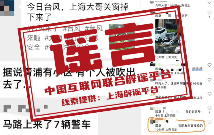 真相:臺(tái)風(fēng)“貝碧嘉”影響上海期間,社交平臺(tái)和部分聊天群出現(xiàn)上海某小區(qū)居民被臺(tái)風(fēng)從高樓吹落的消息,有的說(shuō)在青浦區(qū)、有的說(shuō)在閔行區(qū)。經(jīng)核查,該視頻內(nèi)容系外省市有人輕生跳樓。個(gè)別違法人員在不知道事發(fā)地點(diǎn)和墜樓原因的情況下,為博取流量而張冠李戴,將事發(fā)地編撰為上海浦東、閔行、青浦等地,并發(fā)布在網(wǎng)上,引起群眾恐慌,造成惡劣社會(huì)影響。目前,8名編造傳播謠言的違法人員均已被警方依法處罰。(來(lái)源:“上海網(wǎng)絡(luò)辟謠”微信公眾號(hào))