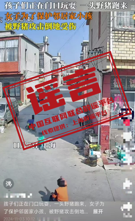 真相:近日,有網民在其自媒體賬號發布一條“女子為保護鄰居孩子被野豬攻擊”的短視頻,引發一些媒體紛紛轉發,并聲稱此事發生在上海市青浦區。經上海辟謠平臺調查發現,該視頻并非拍攝自上海。在首發視頻中,并沒有任何畫面、文字、說明等表示該事件發生在上海,只是發布者的定位在“上海”,但一些媒體在轉發時,“想當然”地以為這件事發生在“上海”,于是在視頻的標題或內容中突出了“上海”。隨著轉發者越來越多,“上海市郊野豬攻擊人”的錯誤信息也越傳越廣。目前,該視頻的首發者已刪除相關視頻并公開澄清事件真相。(來源:“上海網絡辟謠”微信公眾號)